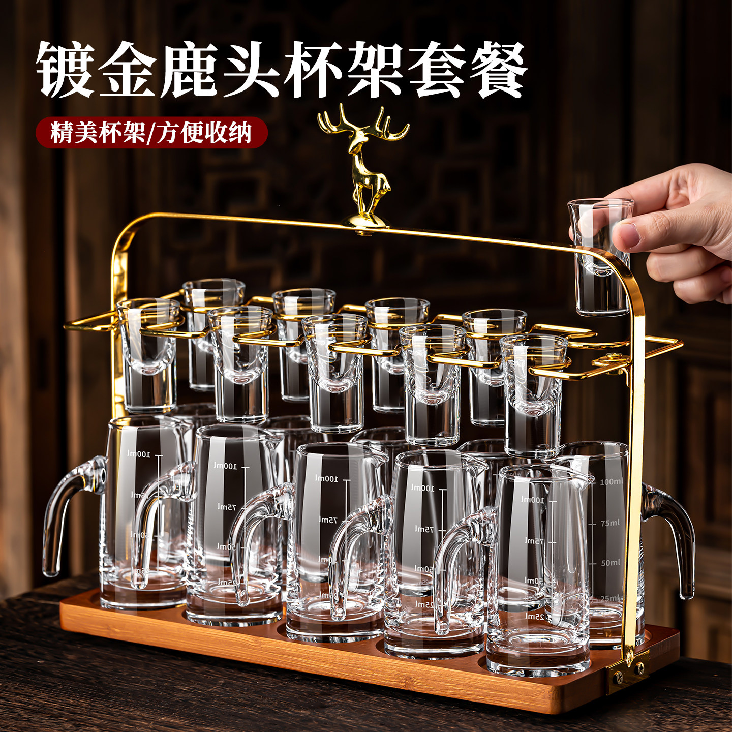 高端精致白酒杯分酒器家用套装轻奢高档酒具一口杯小酒杯水晶玻璃