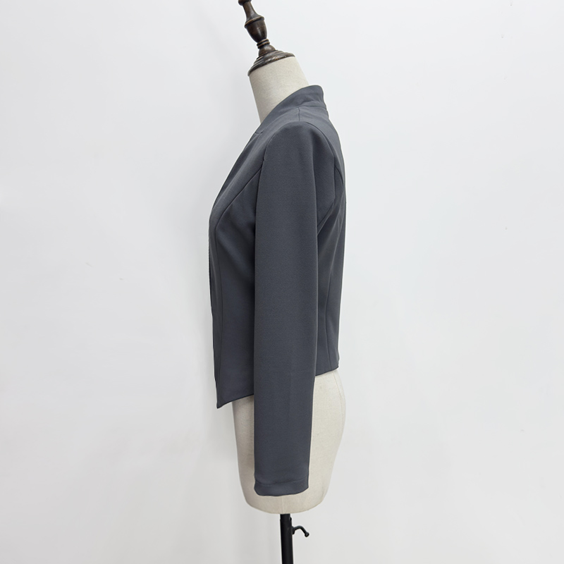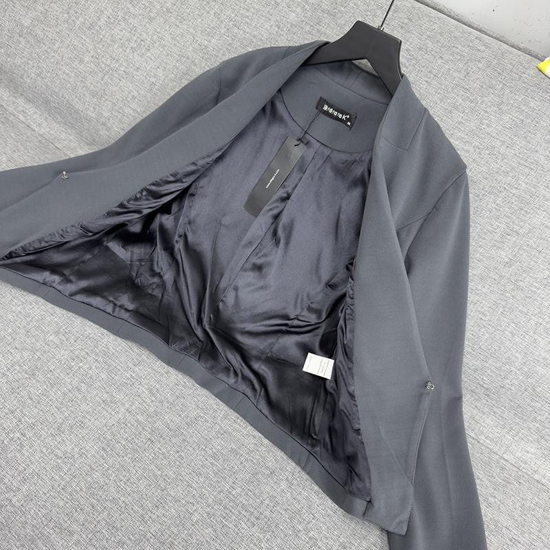 外贸原单灰色休闲西装女长袖春秋新款深V外搭职业通勤一粒扣西服
