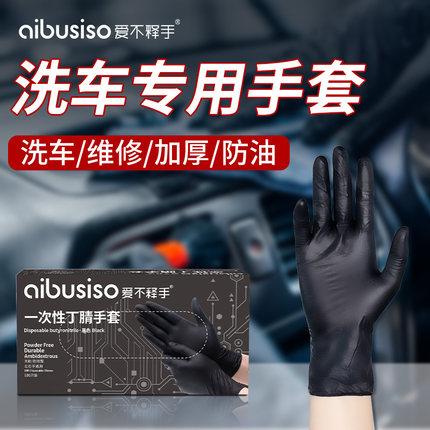 黑色一次性丁腈手套洗车专用乳胶橡胶加厚耐油擦车修车机修防水