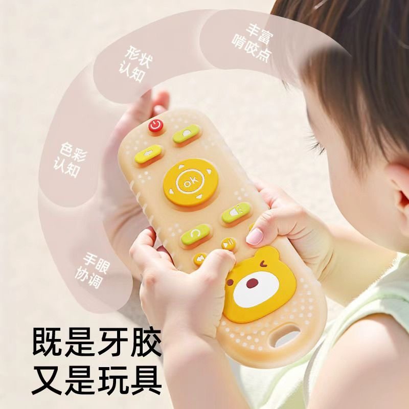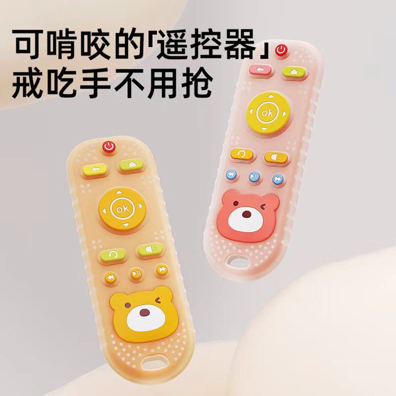 遥控器牙胶婴儿磨牙棒口欲期小月龄咬胶4个月宝宝硅胶可啃咬玩具