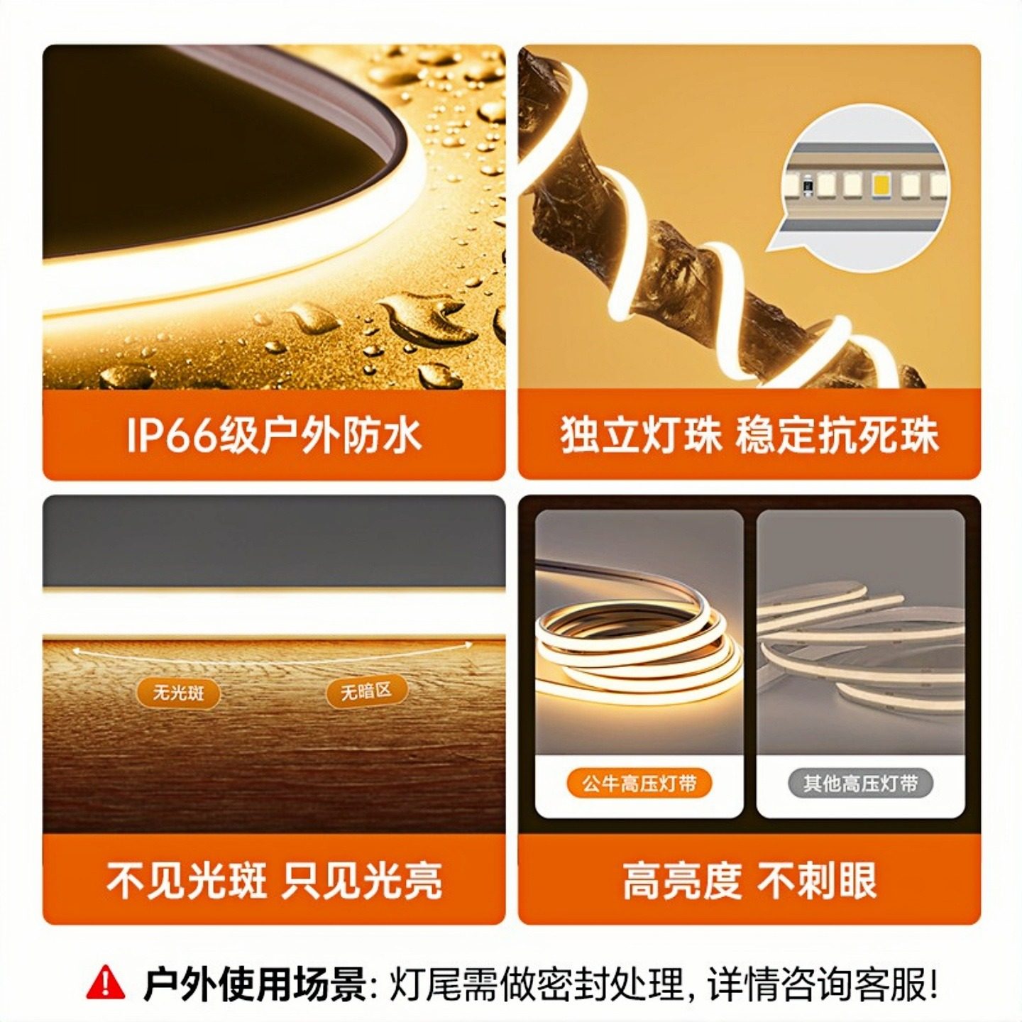 公牛超亮cob无光斑户外防水灯带