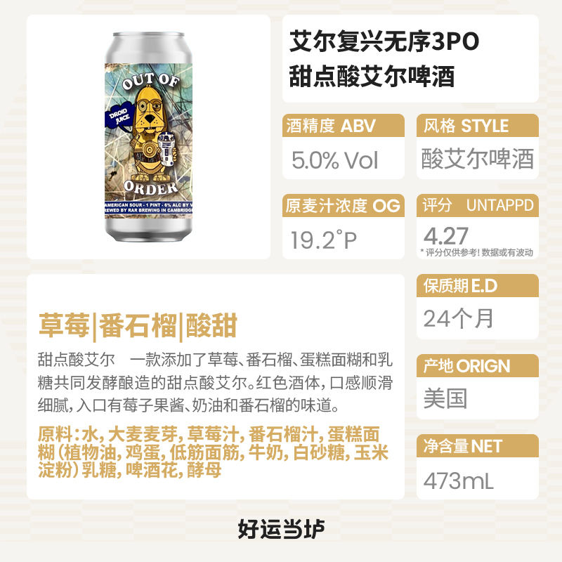【艾尔复兴】无序西斯索斯无序蓝色无序3PO甜点酸艾尔啤酒473ml罐