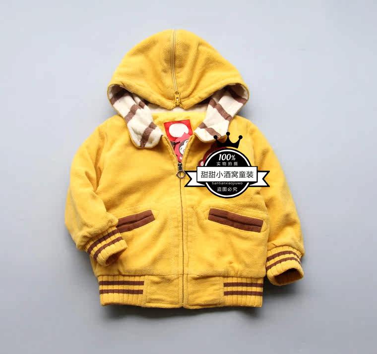 清仓韩单童装儿童可爱猴子摇粒绒薄棉连帽夹克外套男女童