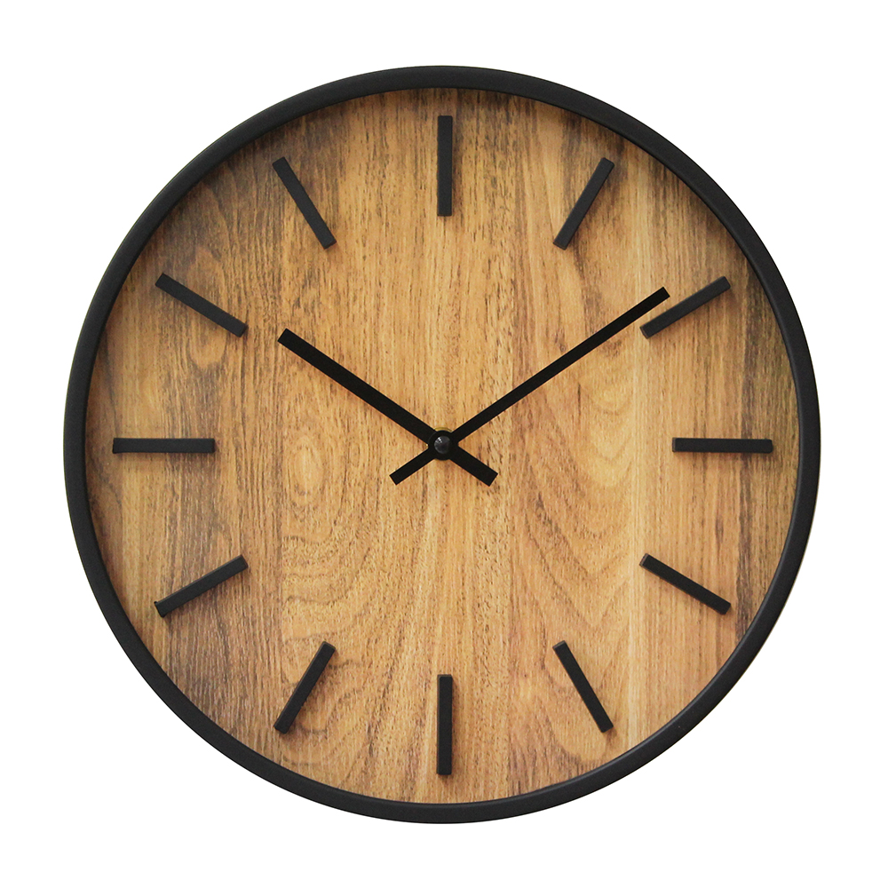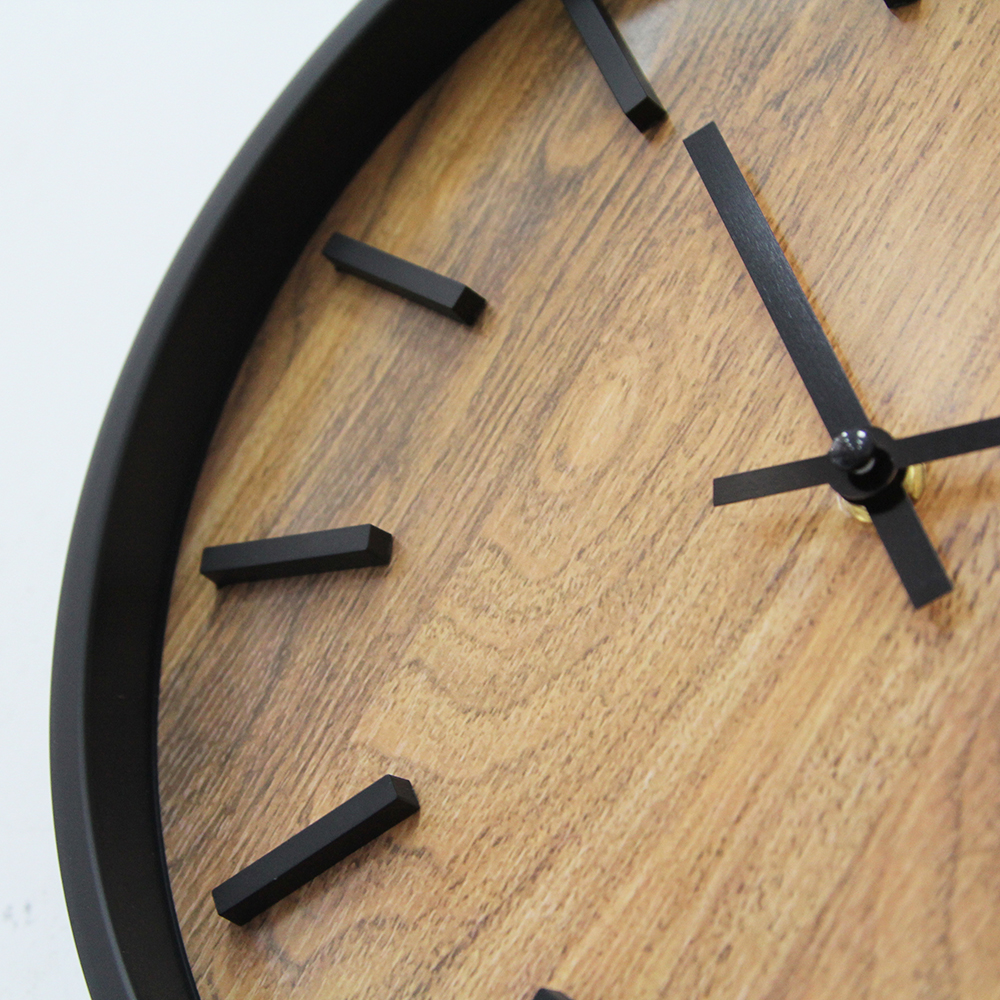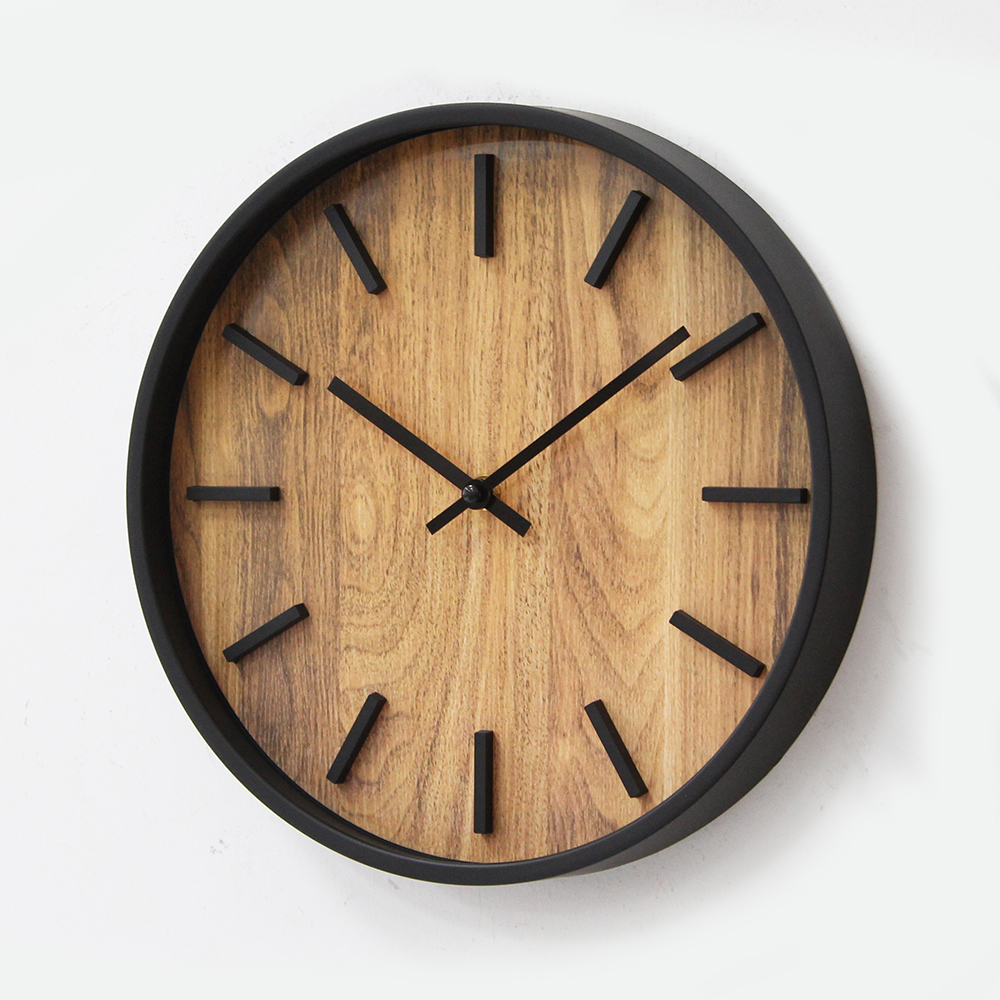 简约现代挂钟木纹黑胡桃客厅装饰圆形创意卧室时钟表静音太阳机芯
