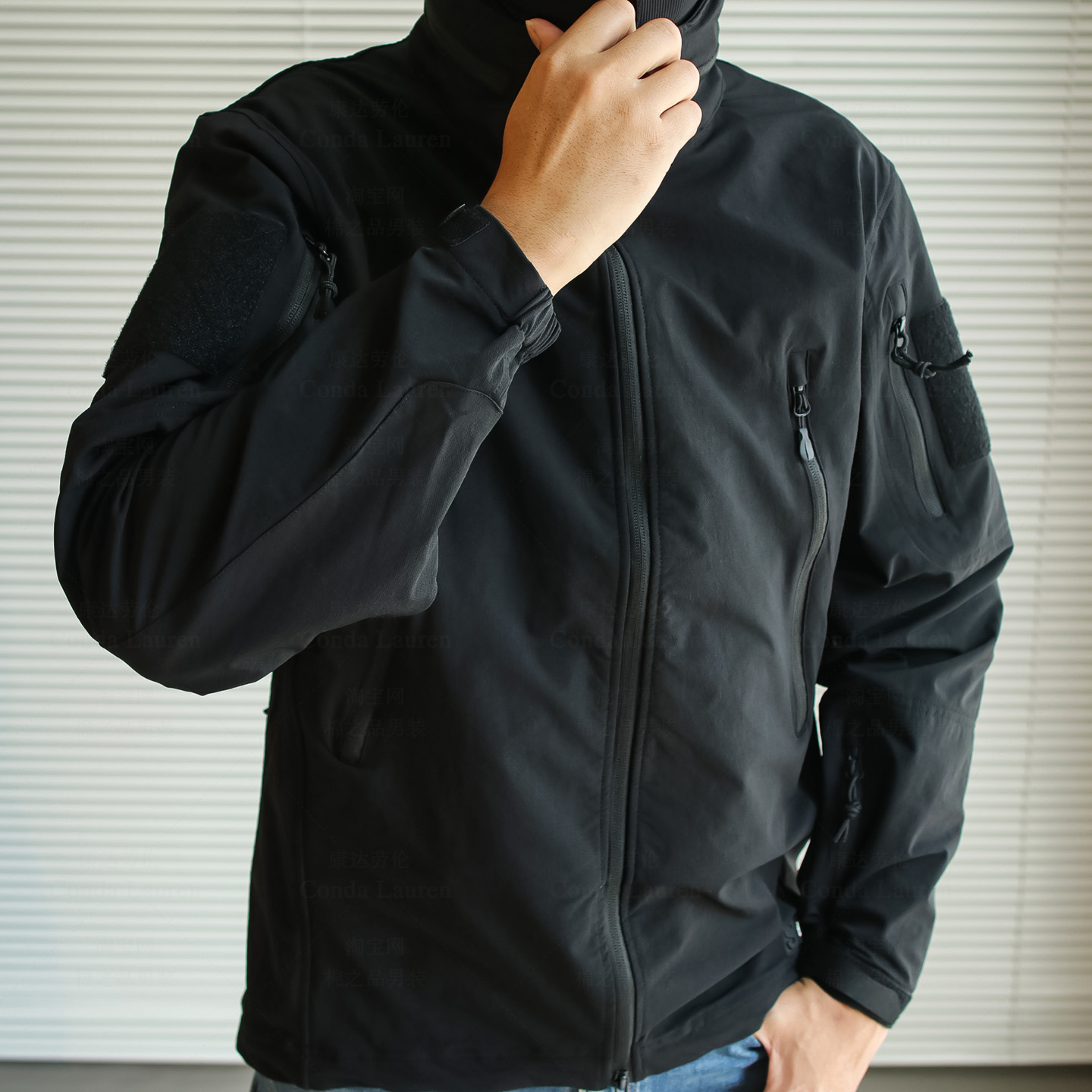 军袅秋冬男士隐藏帽立体剪裁多功能户外防风防泼水战术软壳冲锋衣