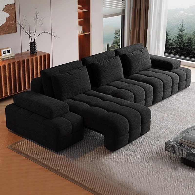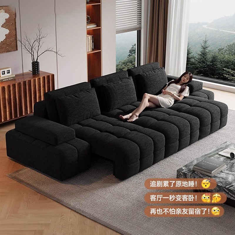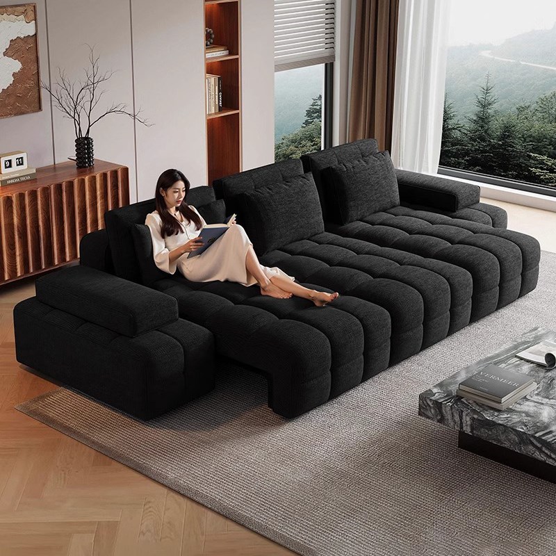 高档别墅大平层横厅大户型客厅雪尼尔劳伦斯布艺沙发直排黑色