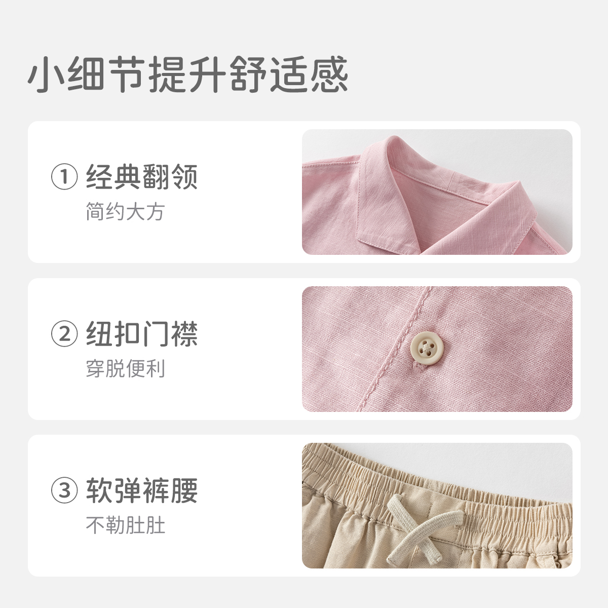 戴维贝拉儿童短裤套装2025男童新款亚麻衬衫两件套男中大童夏装