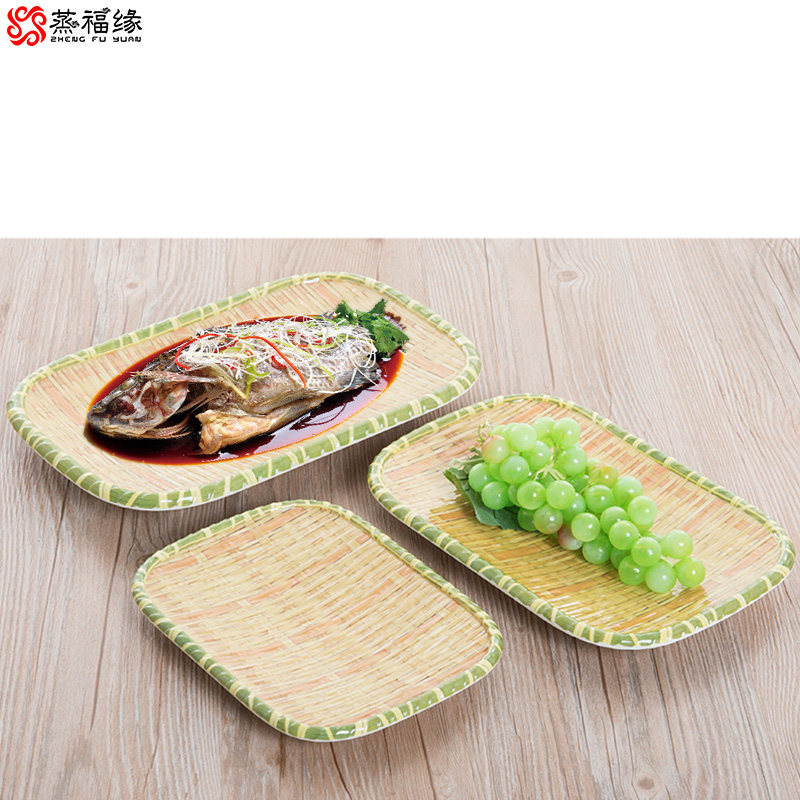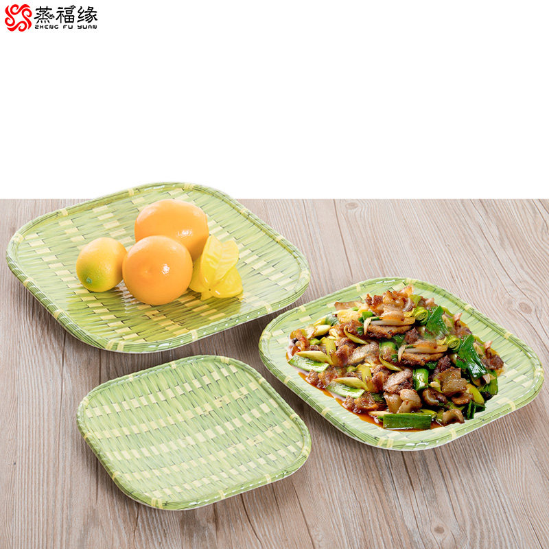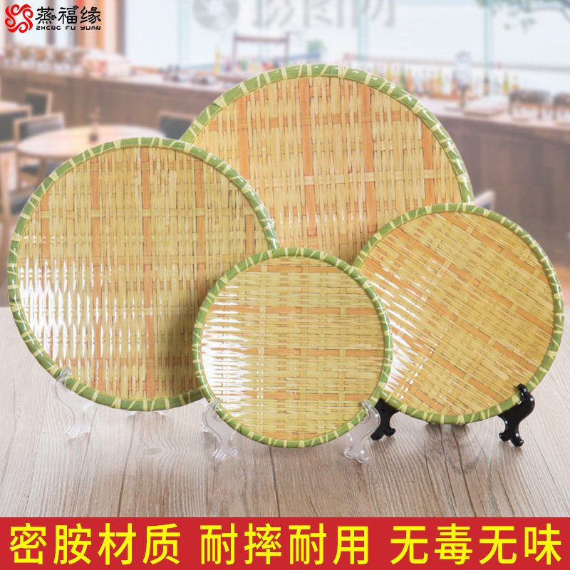 密胺餐具干果盘油炸零食盘子塑料仿竹编簸箕盘子火锅烧烤专用餐盘