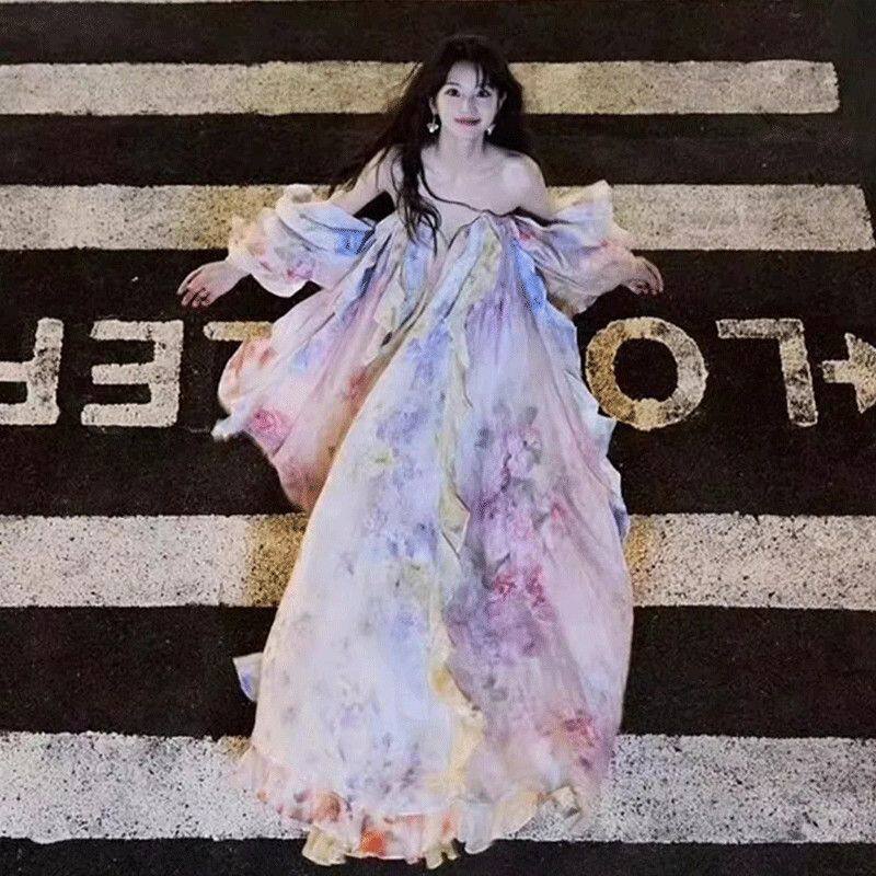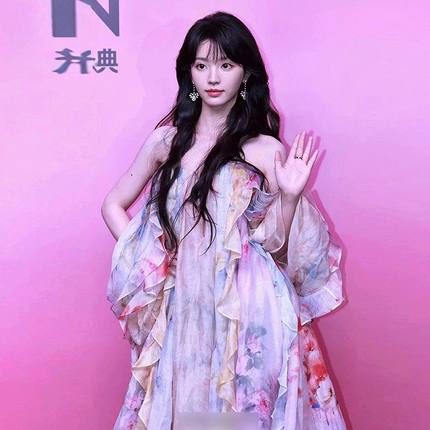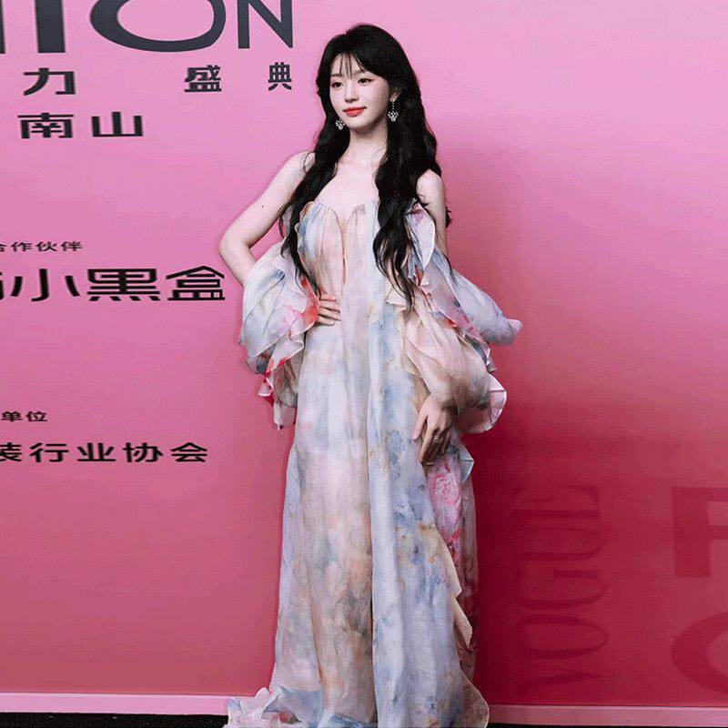 田曦薇同款连衣裙晚宴聚会国风深v领花仙子仙女裙抹胸吊带礼服裙