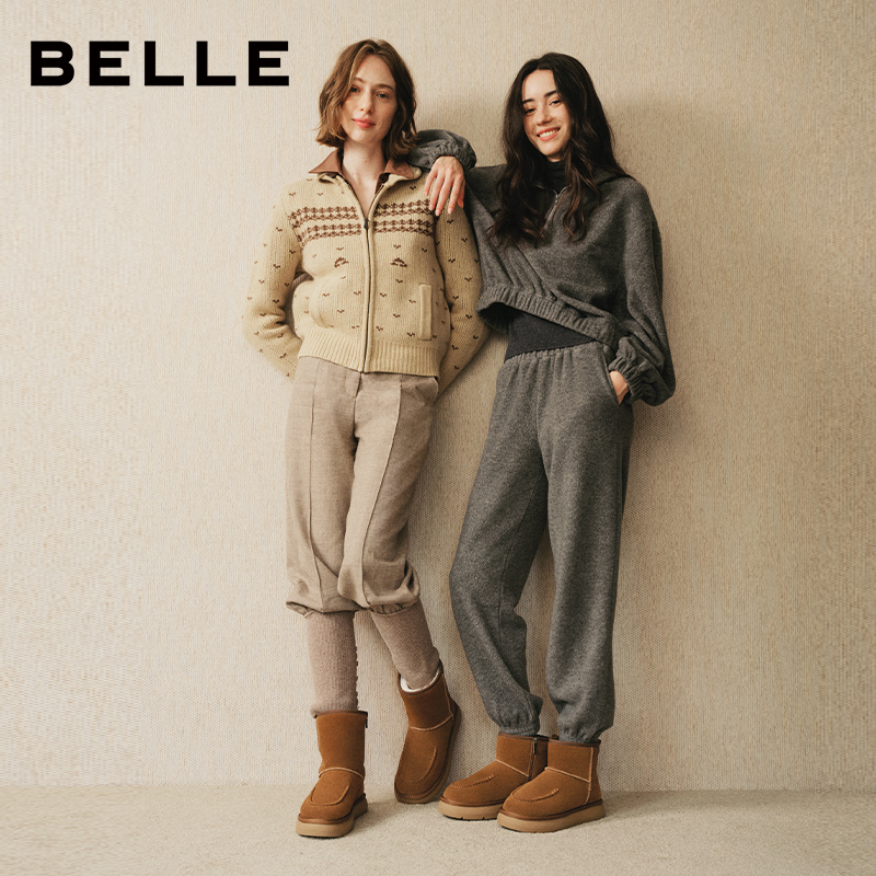 百丽女靴雪布布厚底雪地靴高筒毛里保暖防泼水棉鞋短靴E8C1DDD5