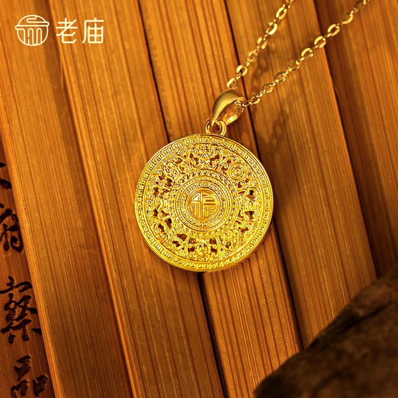 老庙黄金足金八宝罗盘挂坠5D精致立体寓意吉祥八方来财送礼