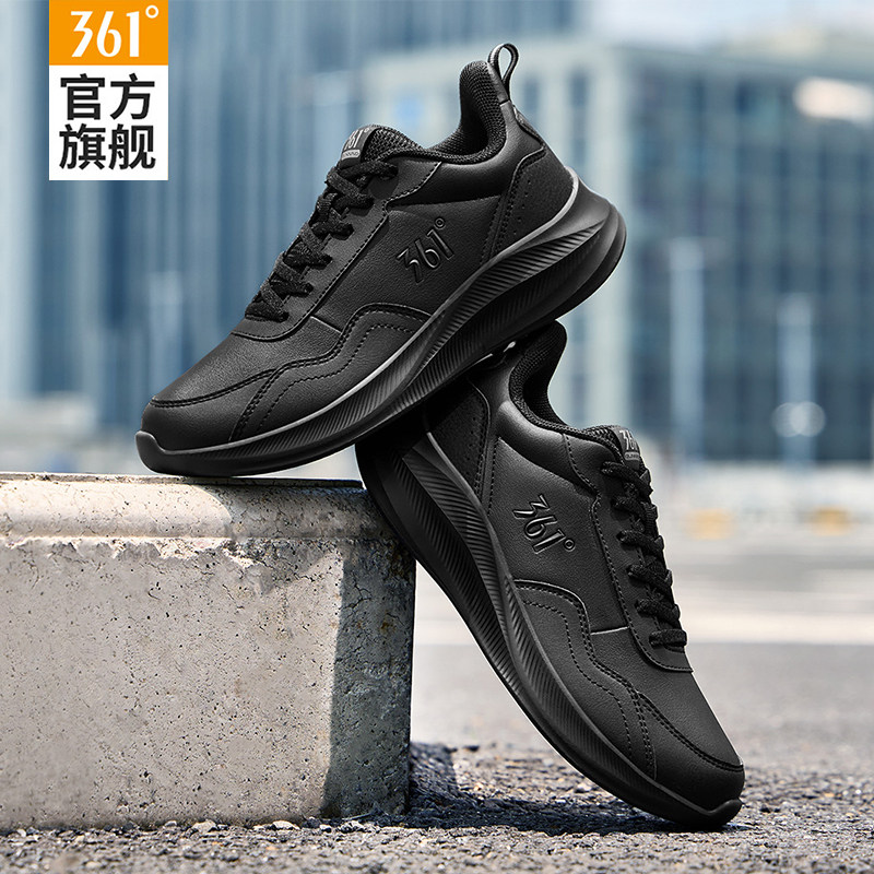 361女鞋运动鞋2025秋冬新款皮面防水跑步鞋女士保暖黑色休闲鞋子
