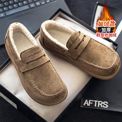 豆豆鞋男鞋冬季休闲软底防滑一脚蹬驾车翻毛皮乐福鞋加绒保暖棉鞋