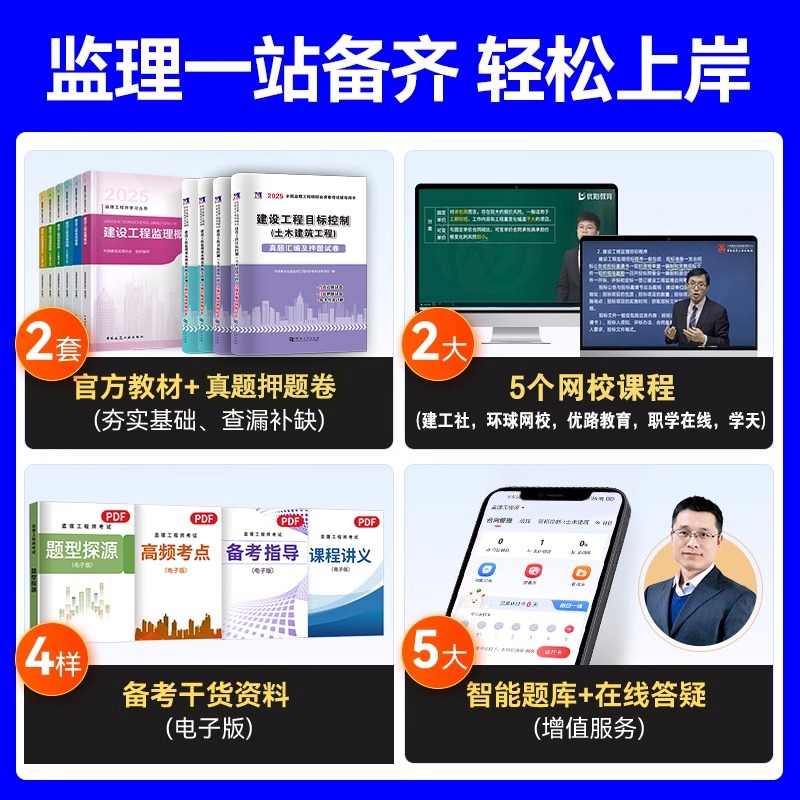 官方监理注册工程师2025年教材土建交通水利工程刷题库监理师课件网课历年真题试卷子同步练习题集专业公路实务案例建筑讲义控制
