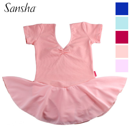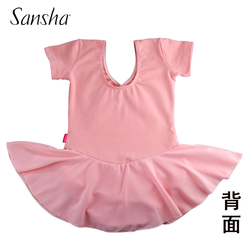 正品三沙Sansha儿童芭蕾舞蹈服 棉短袖练功服 连体雪纺纱裙体操服