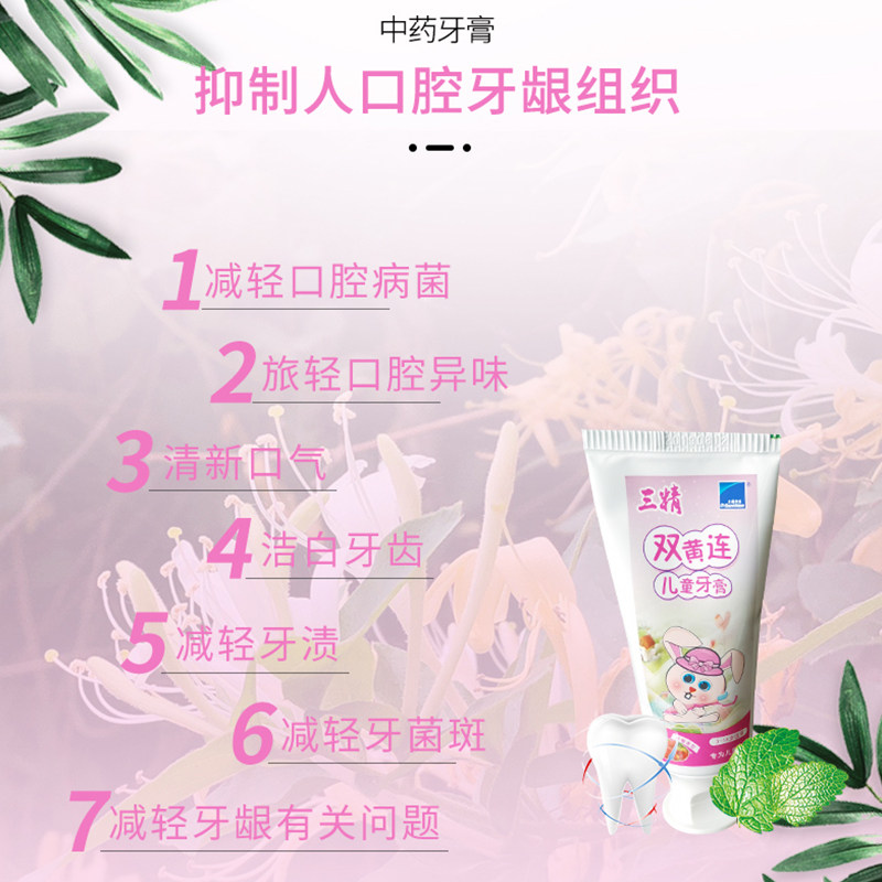 三精双黄连儿童牙膏中药不含氟木糖醇清新口气水果抗敏感防蛀龋齿