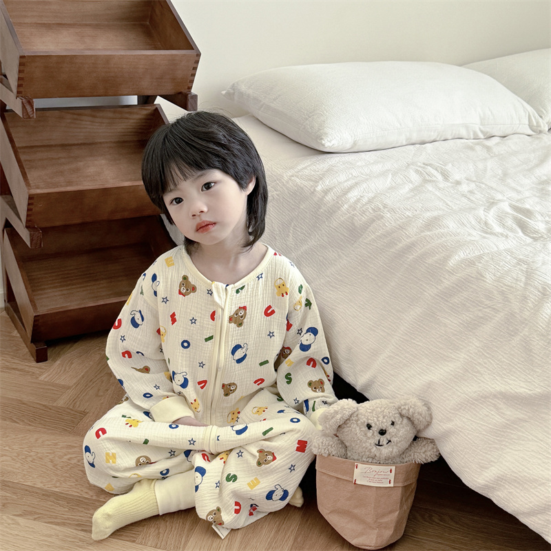 春秋纯棉纱布婴儿睡袋夏季宝宝分腿防踢被儿童四季男女童连体睡衣
