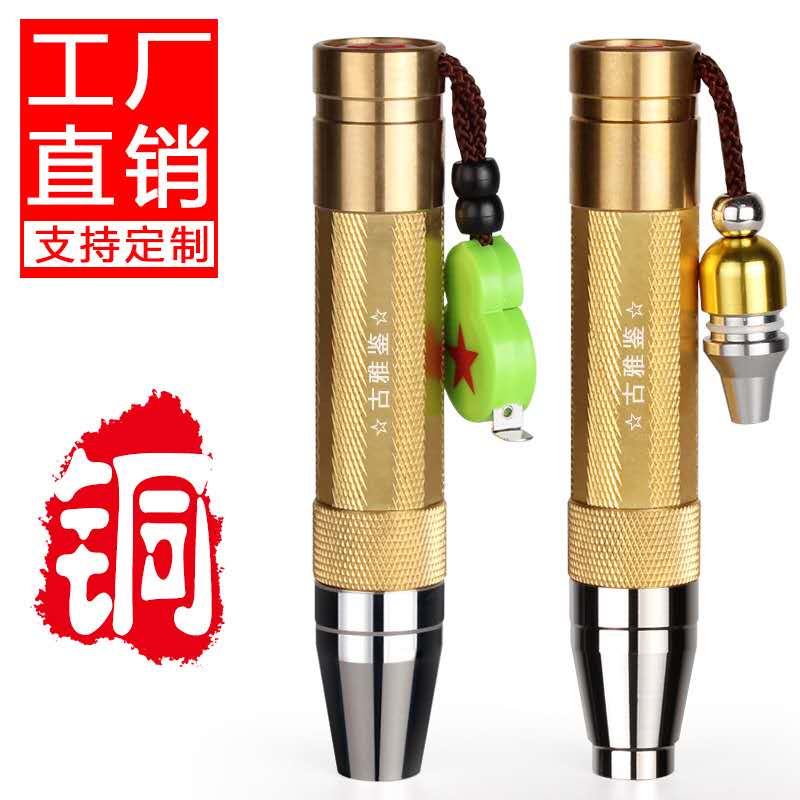 三光源照玉石鉴定专用手电筒高亮强光纯铜筒身小口径原石翡翠蜜蜡
