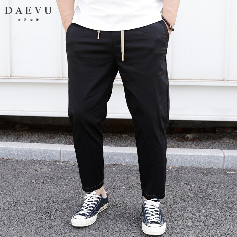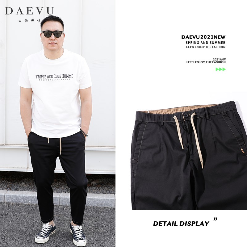 夏新款明线薄料大号潮胖子小脚弹F力加肥加大码男士九分休闲裤