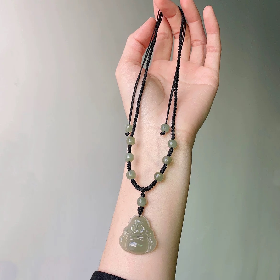 正品原创天然和田玉吊坠女项链玉佛弥勒佛大肚笑佛玉石玉佩佛公