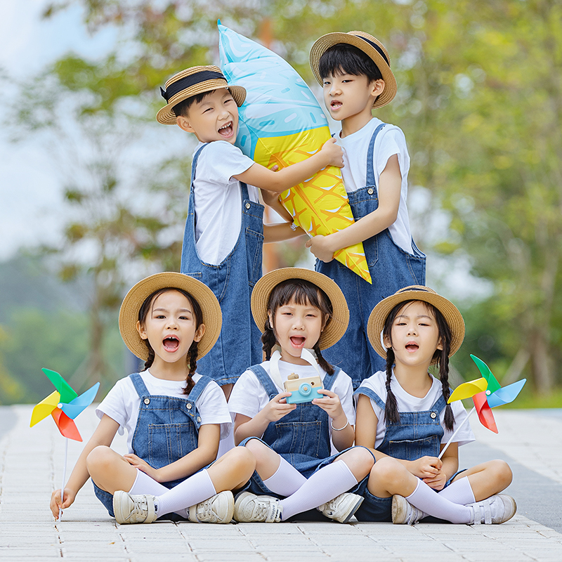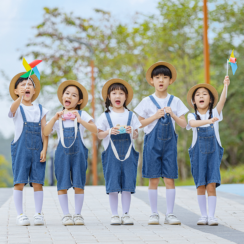 六一儿童节表演服幼儿园小学生毕业照舞蹈比赛团体服演出服背带裤