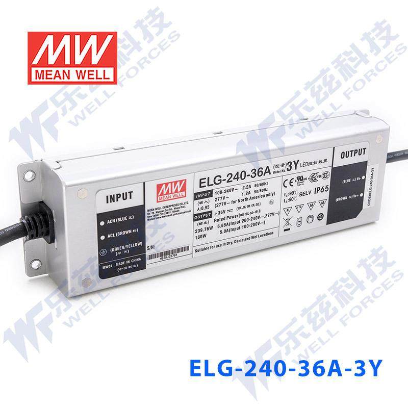 明纬36VLED电源240WELG-240-36A-3Y6.66A可调36V恒压+3芯进线