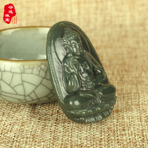 和田玉阿弥陀佛菩萨吊坠项链生肖属猪属狗玉坠男女本命佛挂件