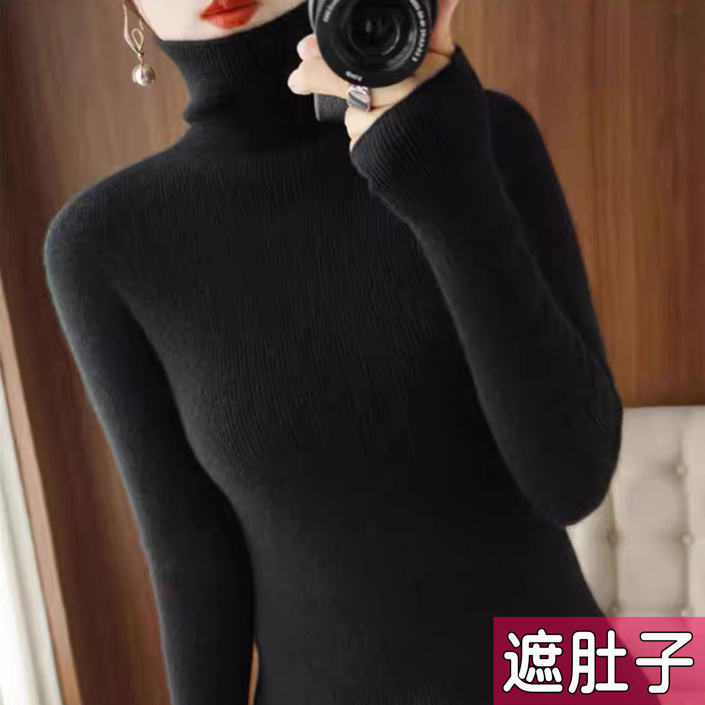 大码软糯风高领毛衣女秋冬洋气配大衣的内搭堆堆领针织打底衫胖mm