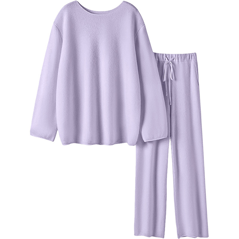 满眼都是美好~空气羊绒系列小一字领上衣加厚9分阔腿裤套装