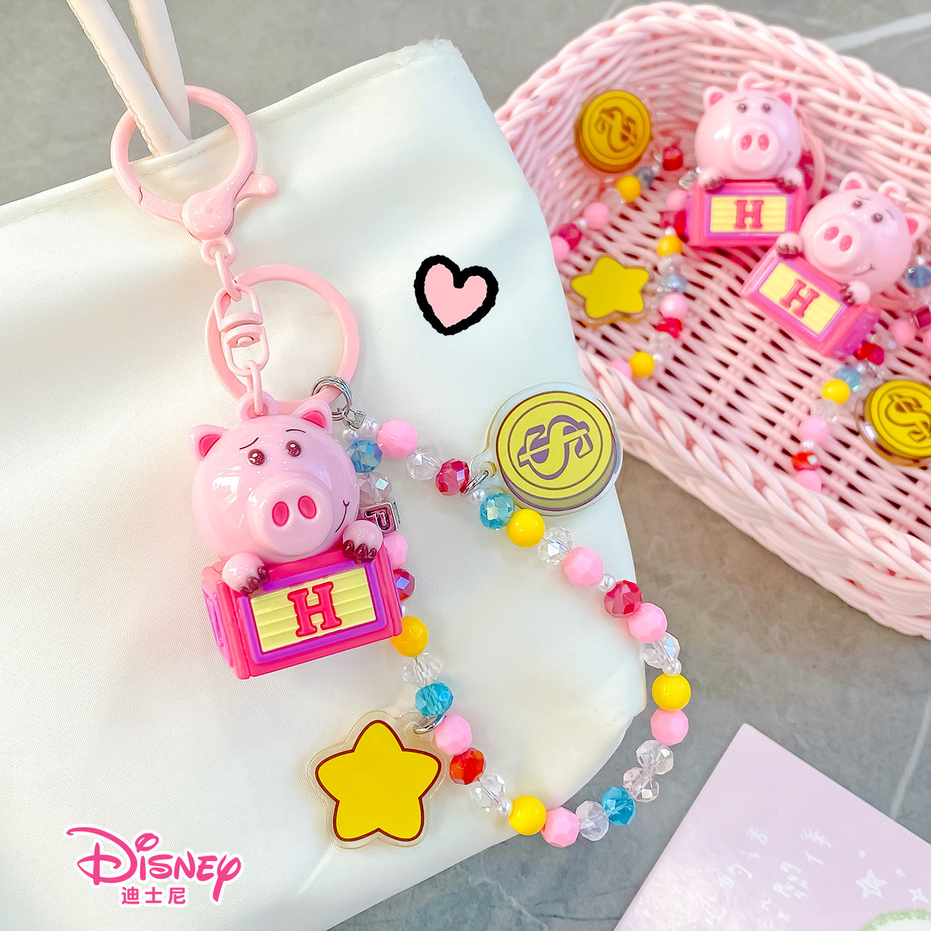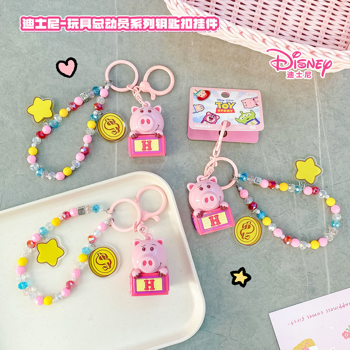 正版迪士尼可爱火腿猪公仔钥匙扣动漫周边儿童背包挂件生日礼物