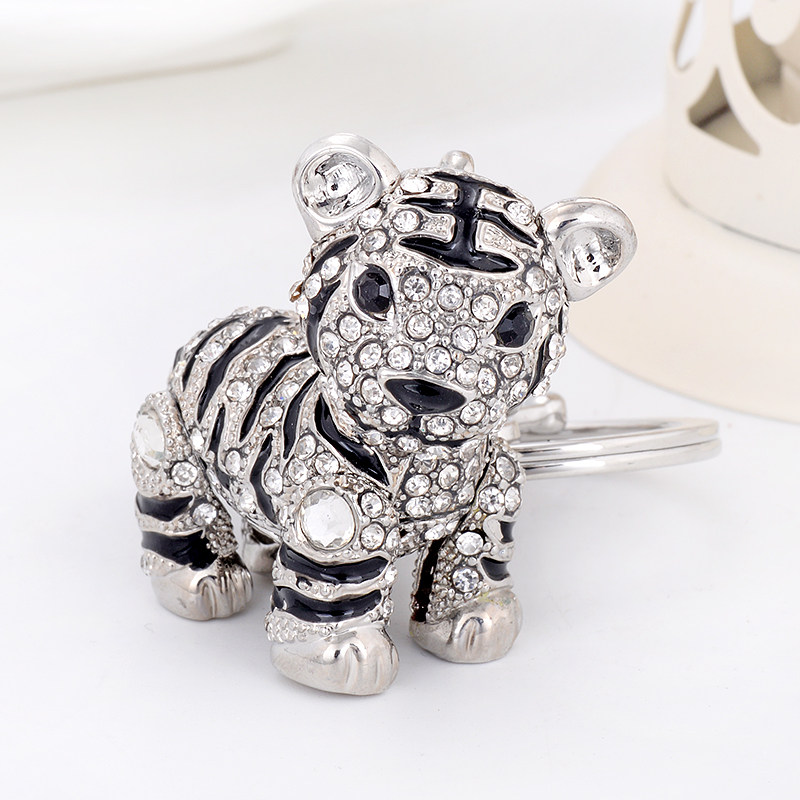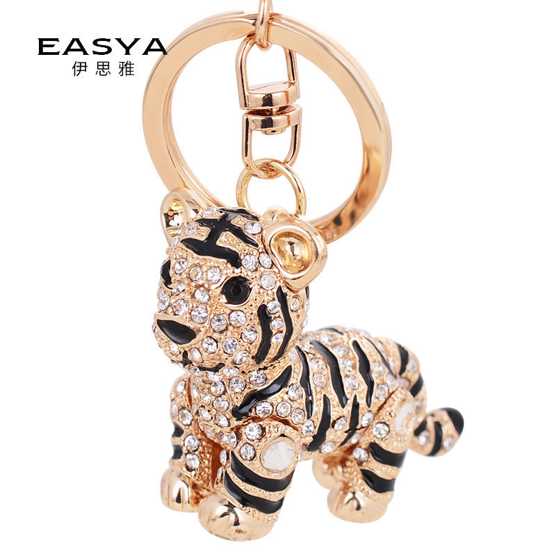 韩国创意可爱水钻十二生肖老虎汽车钥匙扣圈时尚男女士钥匙链挂件