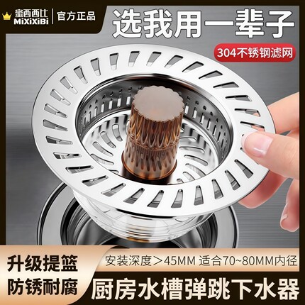 厨房水槽过滤网菜盆漏水塞洗碗池弹跳芯通用不锈钢下水器道封口盖