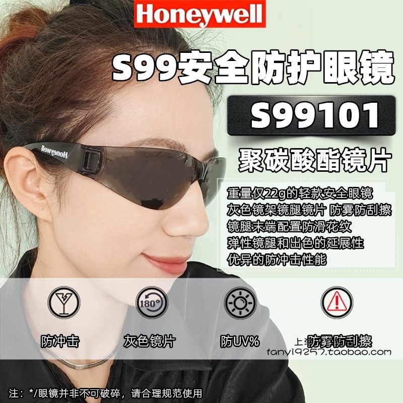 霍尼韦尔S99100/S99101透明灰色防雾防紫外线轻便型流线防护眼镜