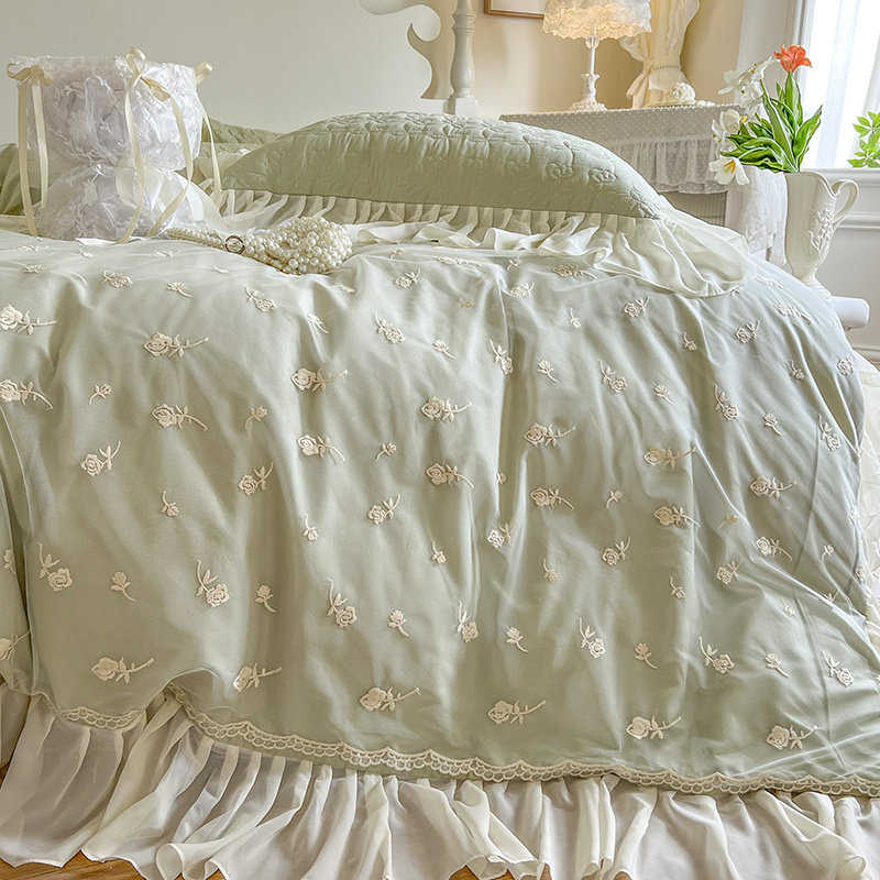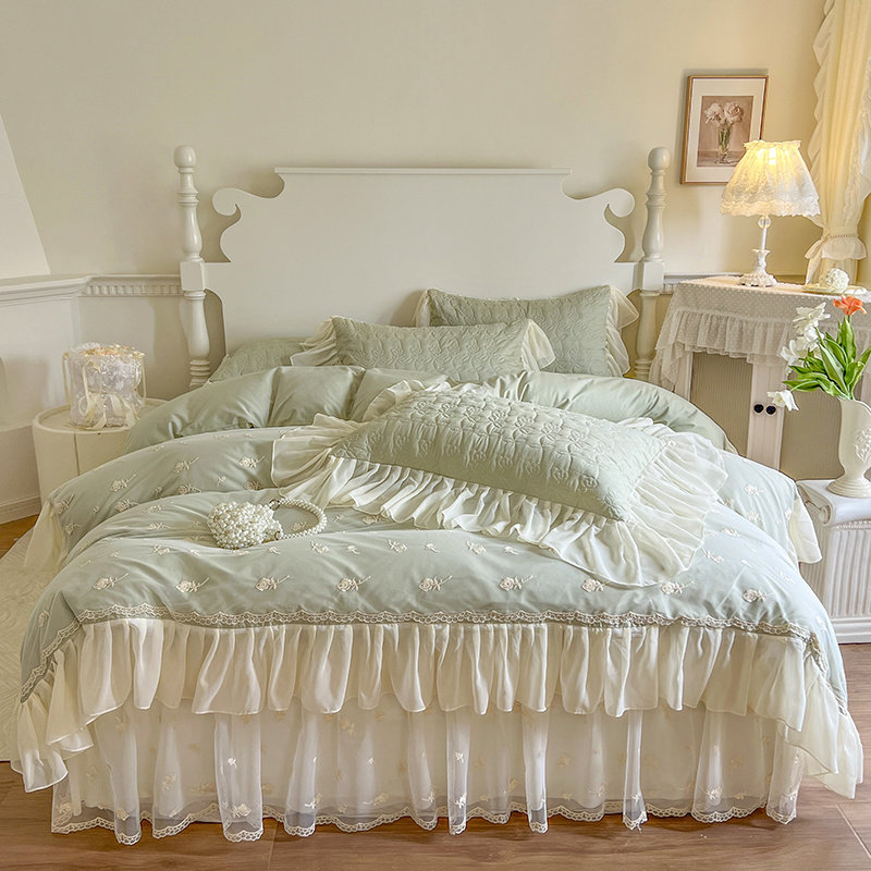 法式少女心全棉四件套轻奢高级感公主风纯棉蕾丝花边被套夹棉床裙