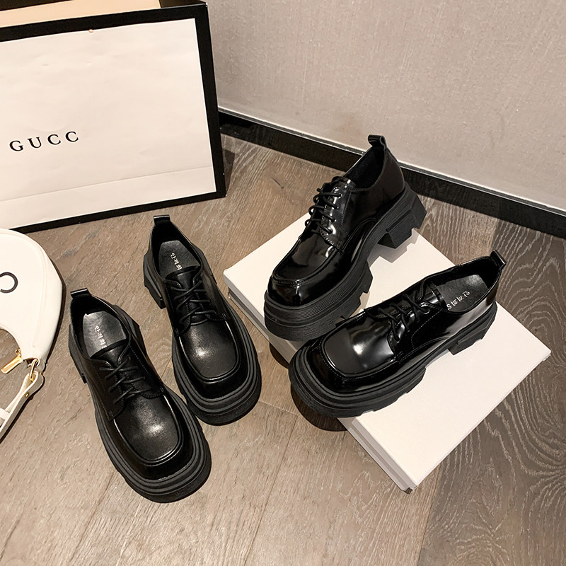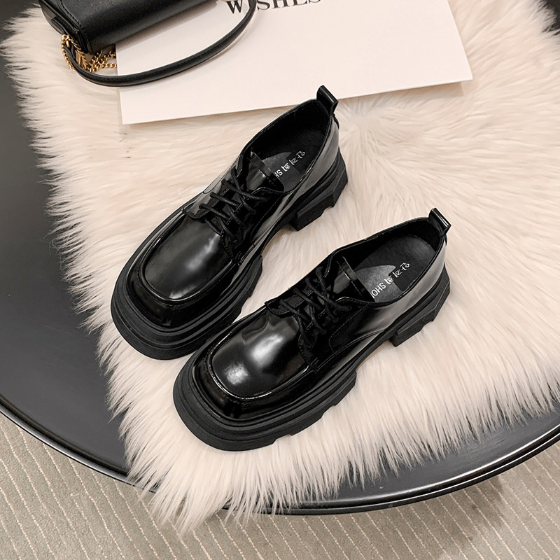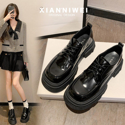 英伦风一脚蹬乐福鞋女2025春秋新款小皮鞋JK鞋厚底圆头系带单鞋女