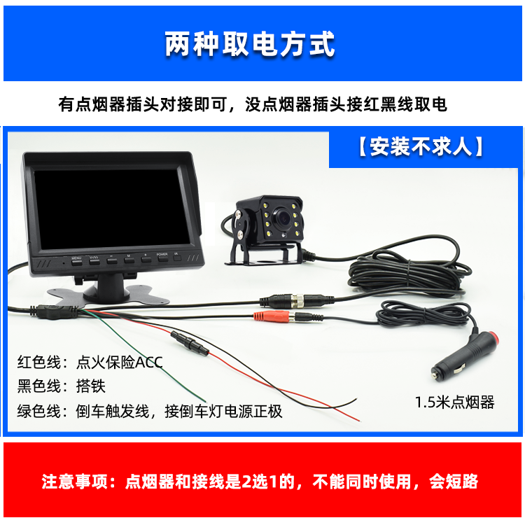 12-24V高清夜视收割机倒车影像双摄像头大货车监控7寸车载显示器