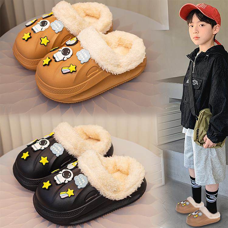 KFT脚王儿童棉拖鞋男童家室内2025保新款踩冬季加绒加厚暖棉鞋居