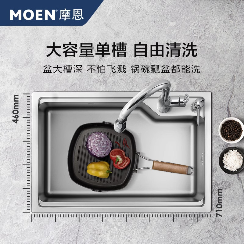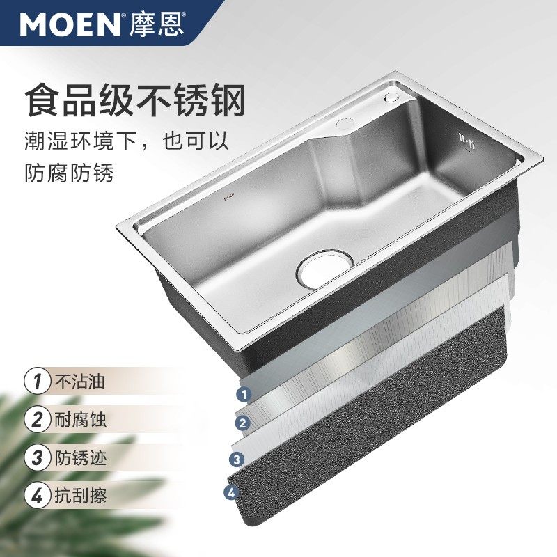 摩恩304不锈钢水槽台上台下盆