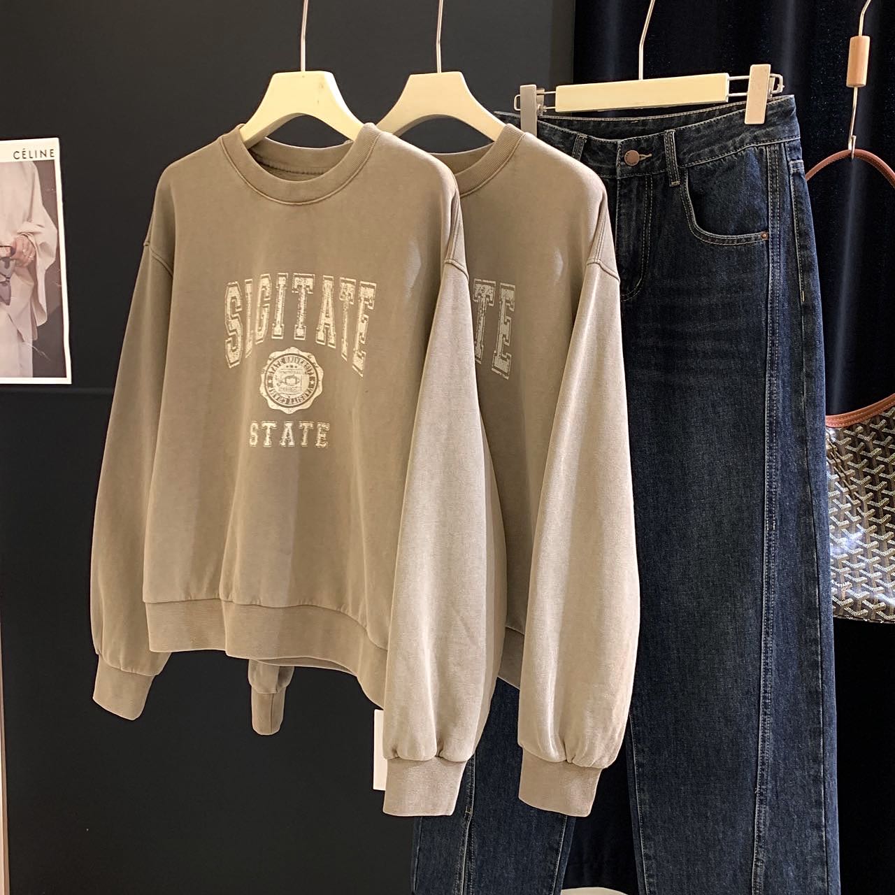H17宽松慵懒风卫衣女套头春季新款设计感小众长袖休闲上衣薄