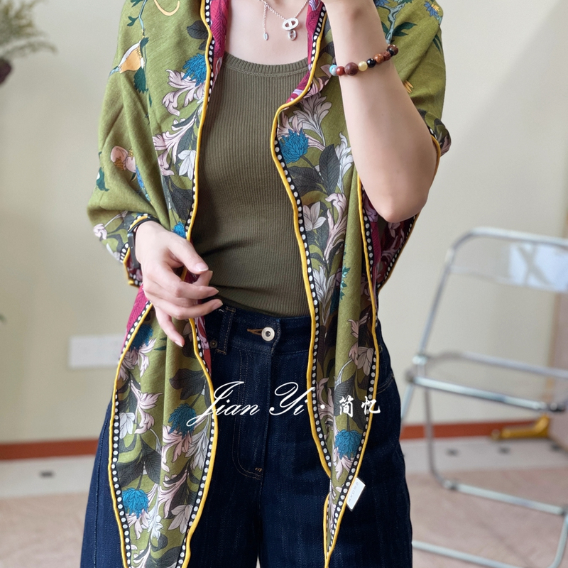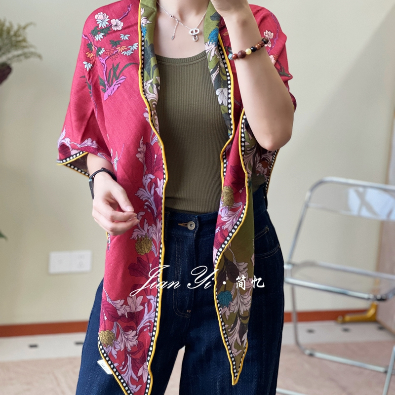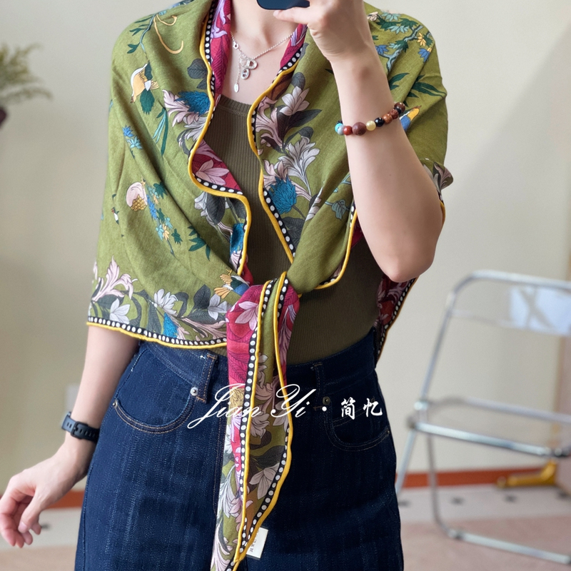 【青鸟庭院】经典百搭桑蚕丝真丝羊毛羊绒大三角巾双面披肩围巾女