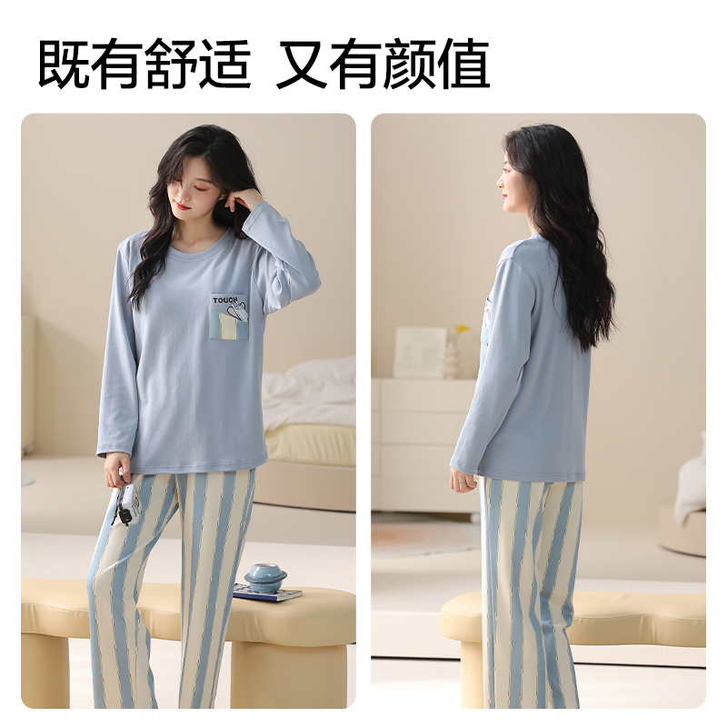 猫人睡衣女款长袖秋季2025新款大码带胸垫春秋女士纯棉家居服套装