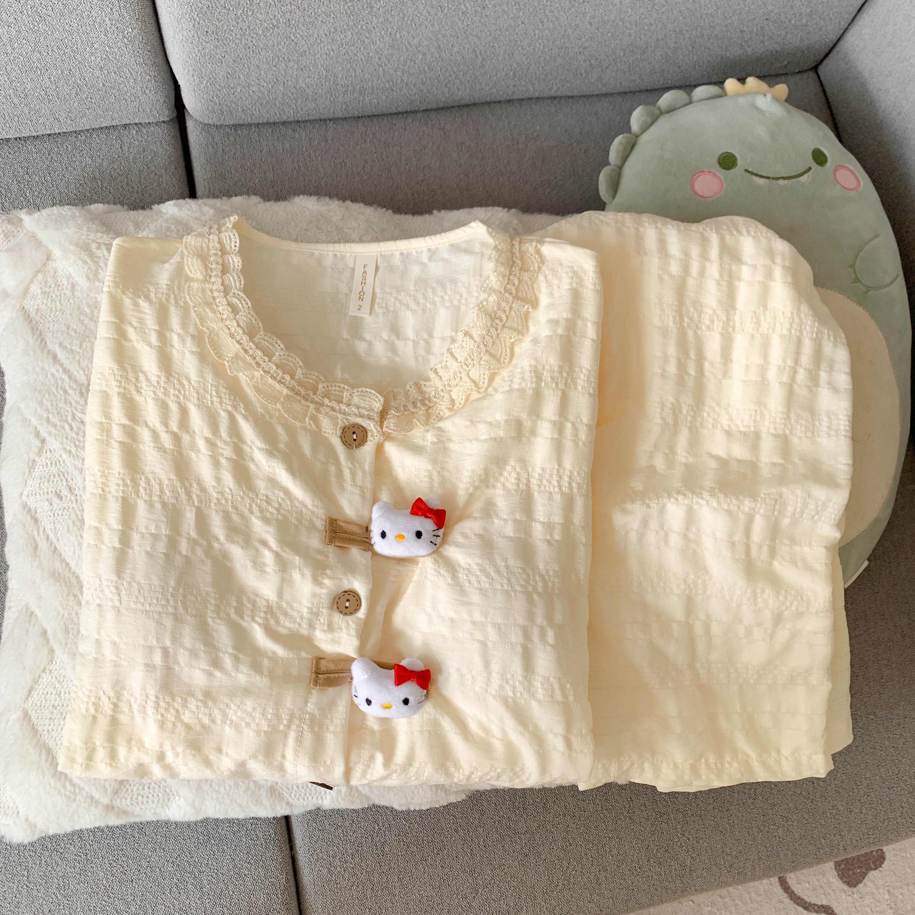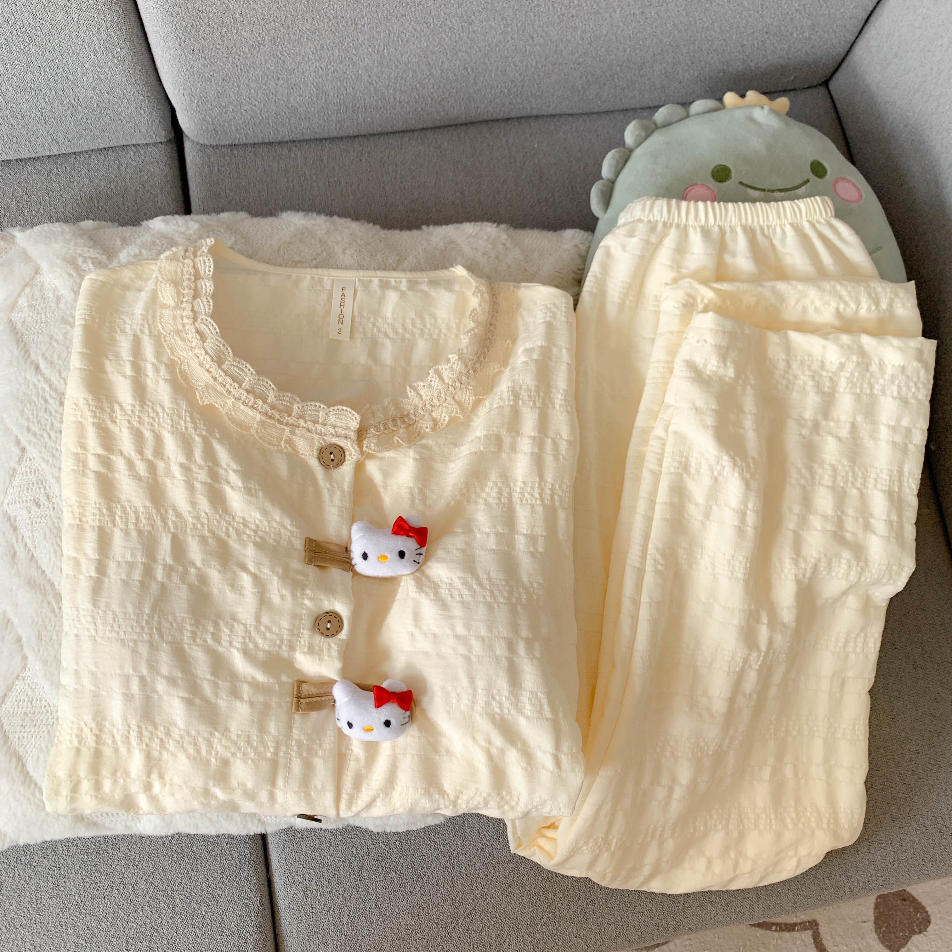 2025年新款可爱KT猫咪胸垫款睡衣可爱少女春夏季长袖家居服套装薄