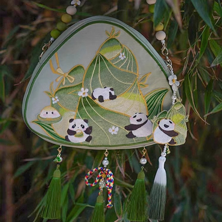 十万针刺绣熊猫包汉服包包古风斜挎包女手机包可爱粽子包包端午节