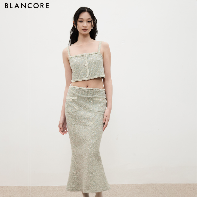 【设计师品牌BLANCORE】2025秋季新款复古优雅小香风鱼尾半裙女