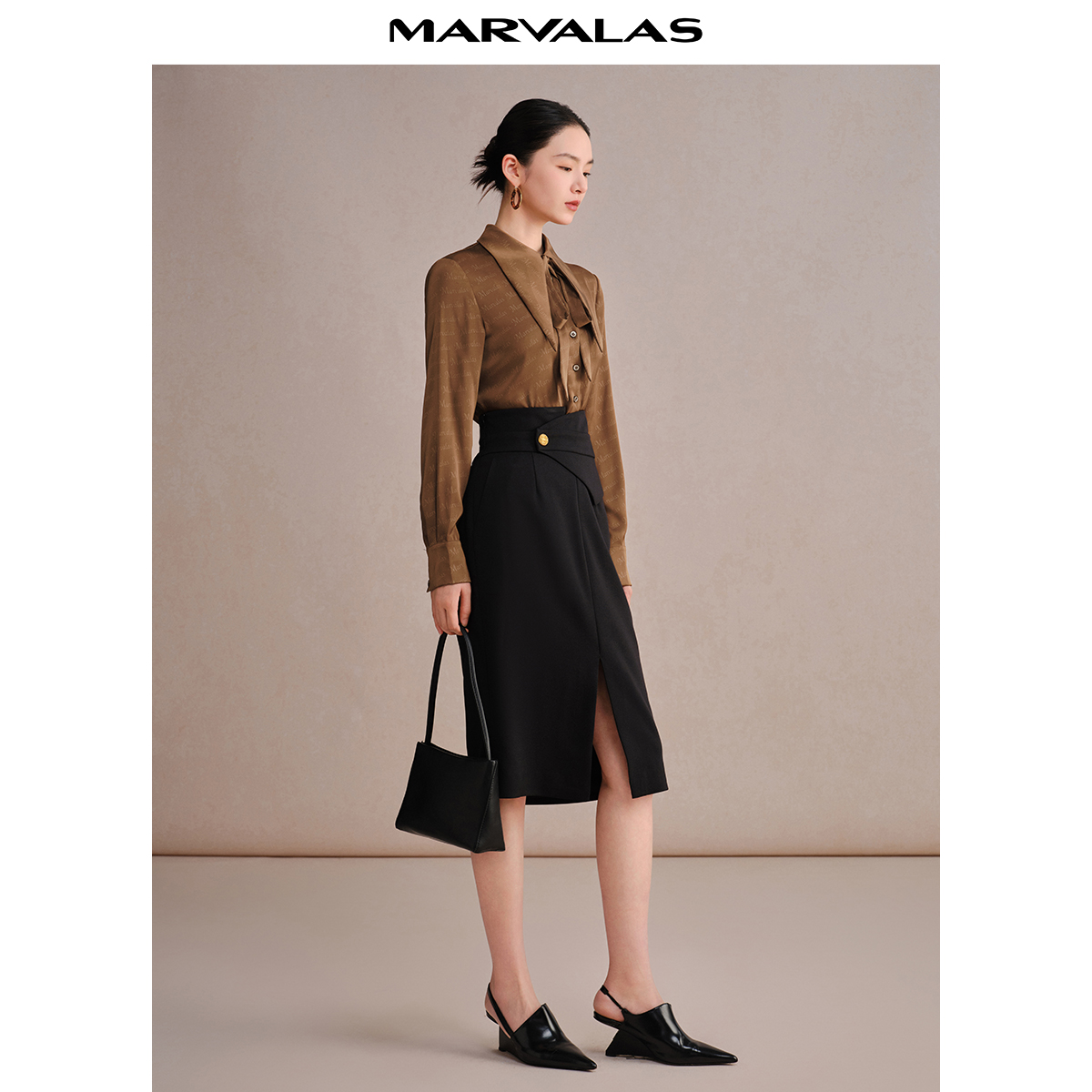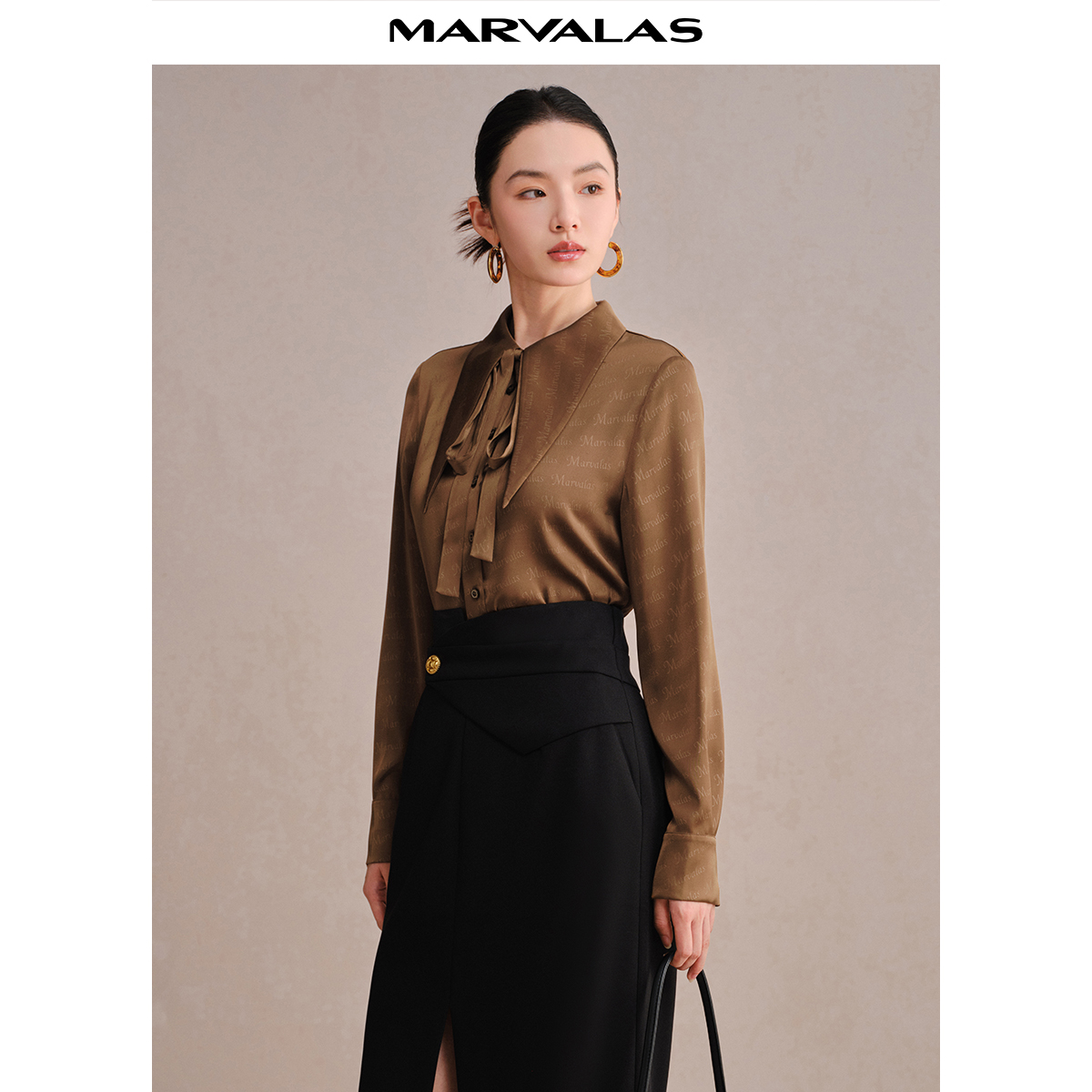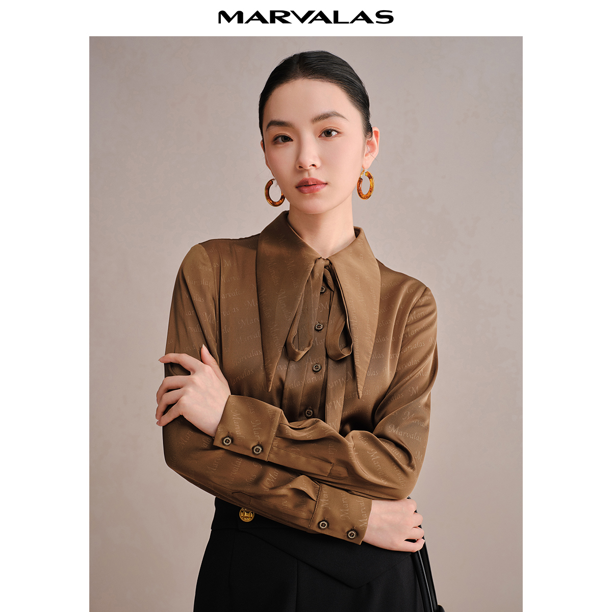 曼德诗衬衫女2025冬季新品字母印花时尚小上衣通勤OL抗皱雪纺衬衣