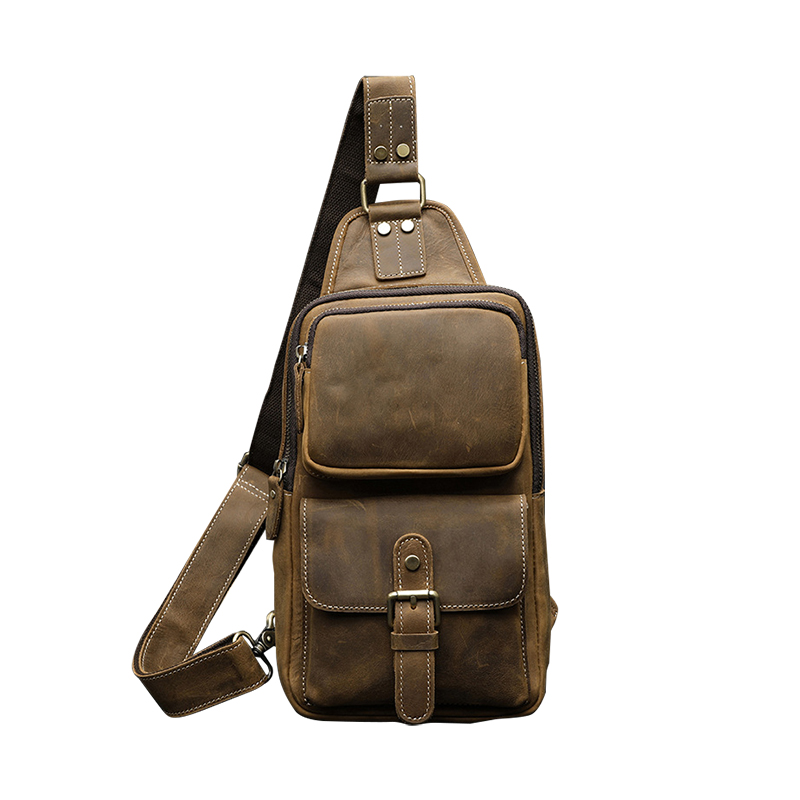 疯马皮新款胸包大容量多功能单肩斜挎包个性休闲牛皮男包真皮背包