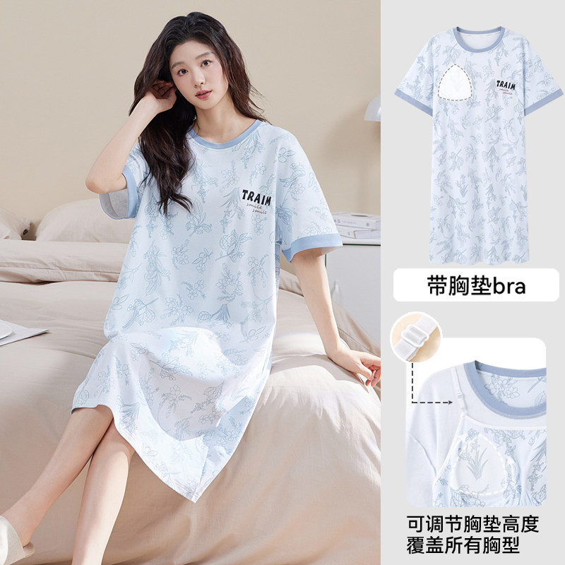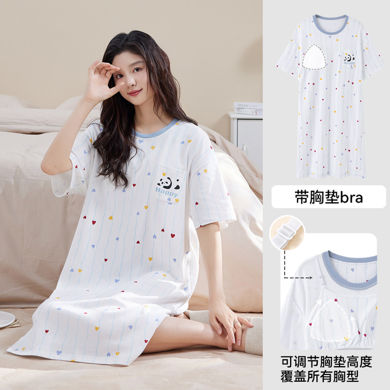 睡裙女士夏季夏天孕妇纯棉睡衣夏款2025新款短袖家居服带胸垫一体