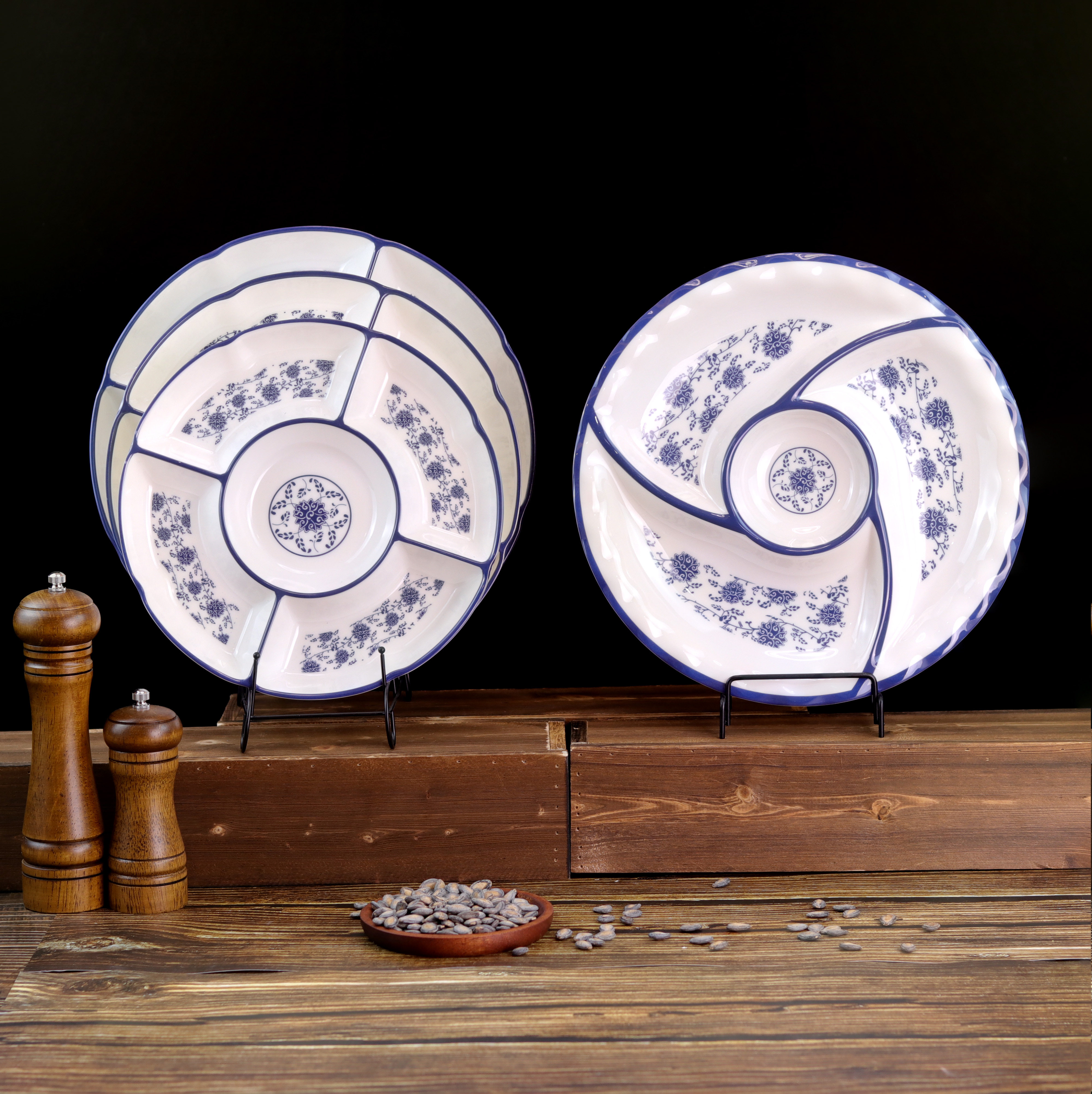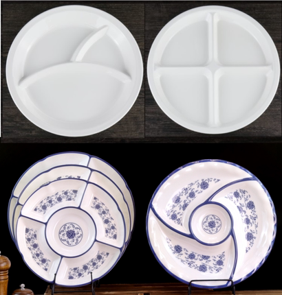 仿瓷密胺卤水拼盘分隔餐盘青花瓷五果盘快餐盘点心盘凉菜盘中餐