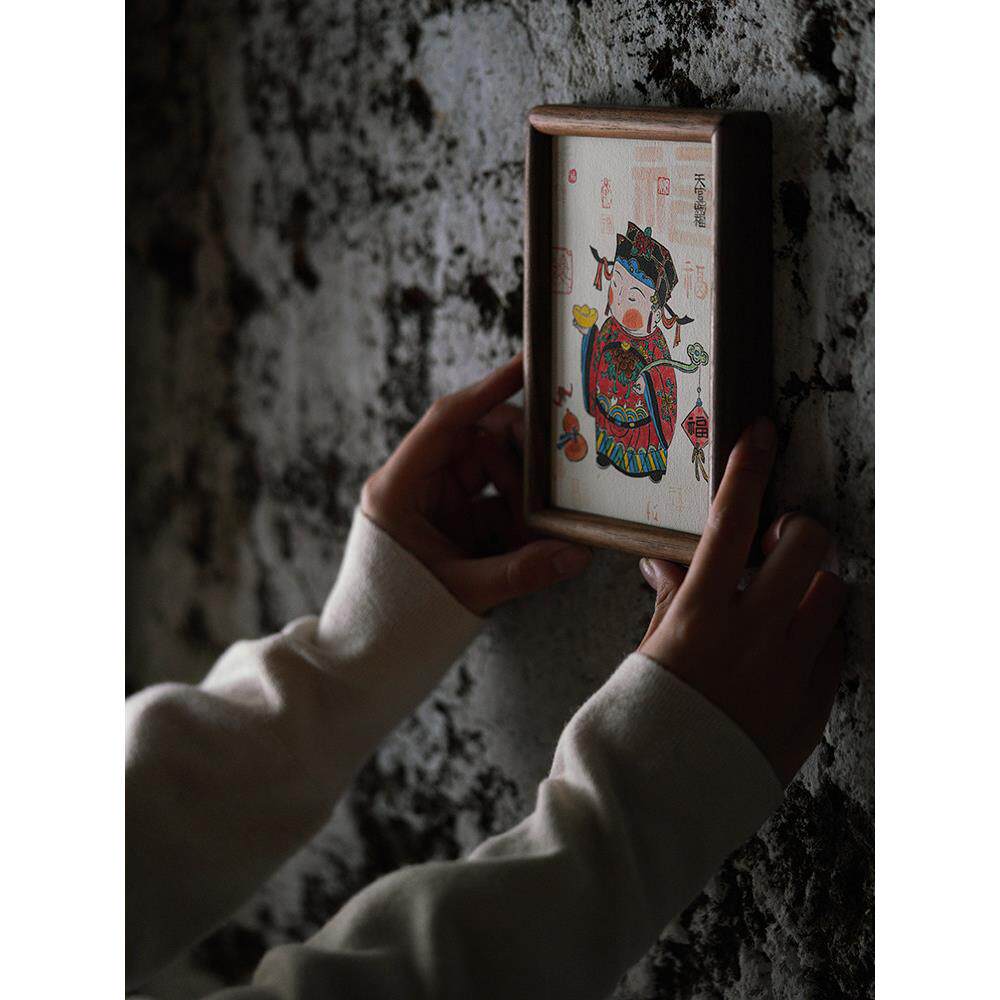黑胡桃实木天官赐福相框摆台展示柜客厅玄关墙壁装饰年画木质玻璃