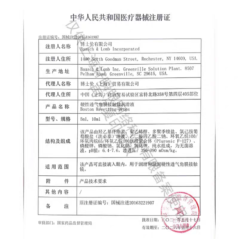 博士伦博视顿舒润润滑液10ml硬性RGP角膜塑形OK镜隐形镜润眼液TF
